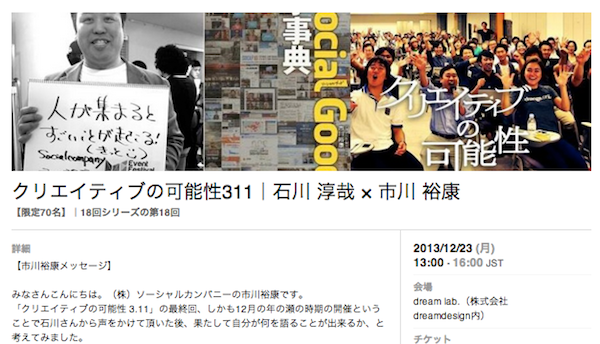 みなさん こんにちは。あっという間に12月も第2週、確実に年の瀬が近づいてきていますね。 今回は久しぶりに登壇イベントの告知をさせて頂きます:) クリエイティブの可能性311|石川 淳哉 × 市川 裕康 日時:12/23 […]